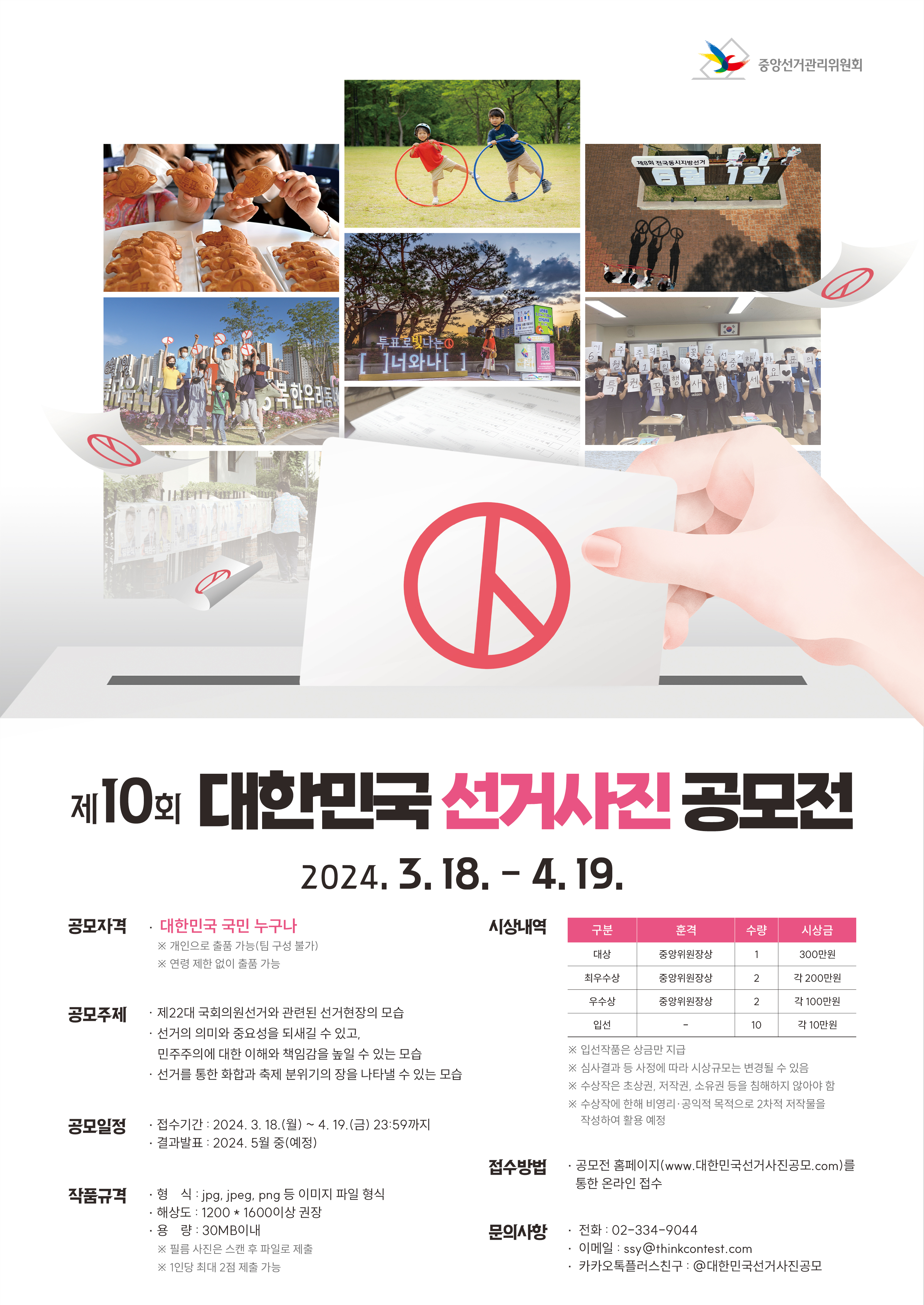 제10회 대한민국 선거사진 공모전 이벤트가 있습니다. 선거일 종료 후 2024년 4월 19일 금요일까지 인증숏을 해당 URL로 제출하시면 아웃백 5만 원권을 받으실 수 있습니다. 행운의 이벤트 지금 바로 확인하세요.